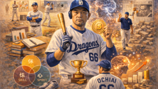 プロ野球史上唯一の3度の三冠王、監督として8年連続Aクラス・4度のリーグ優勝を達成した落合博満の思考法を徹底解説します。「心技体ではなく体技心」「練習は嘘をつかない」「人に見せない練習こそが本物」——オレ流の本質は「なぜを問い続け、自分の頭で考え、体で確かめること」でした。孤独に勝つ力と自立型人間の作り方、采配哲学まで余すことなく学べます。
