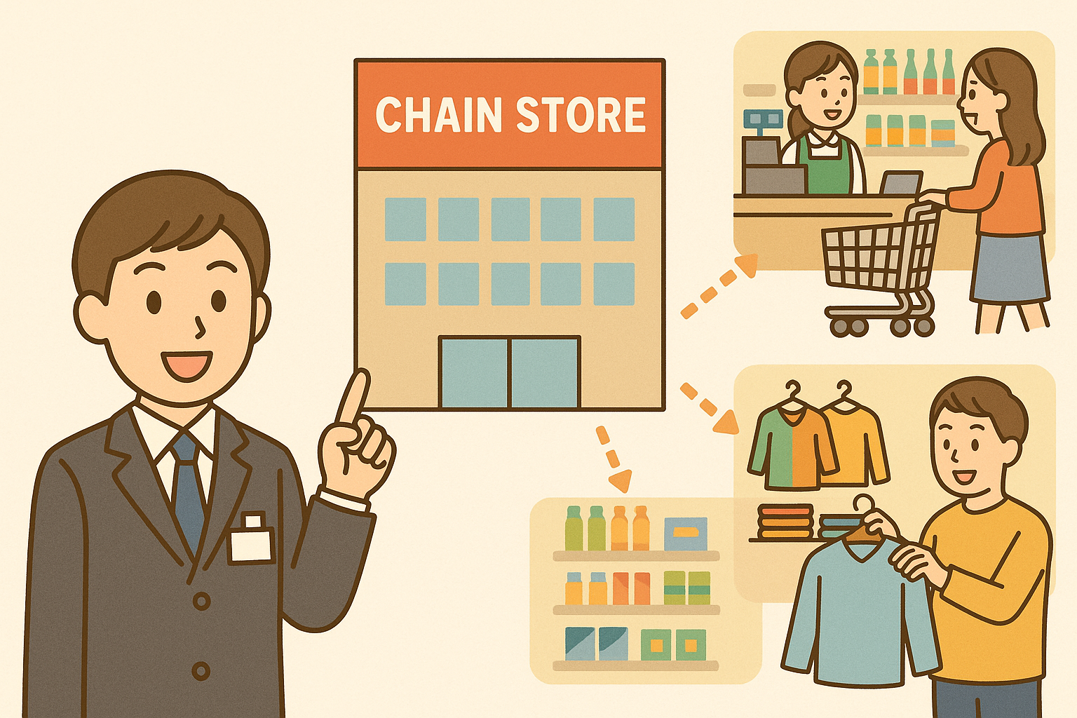 販売士になろう!:⑦「チェーンオペレーション」(販売士3級無料講座)チェーンオペレーションとは?3つの形態と試験対策を初心者向けに解説
