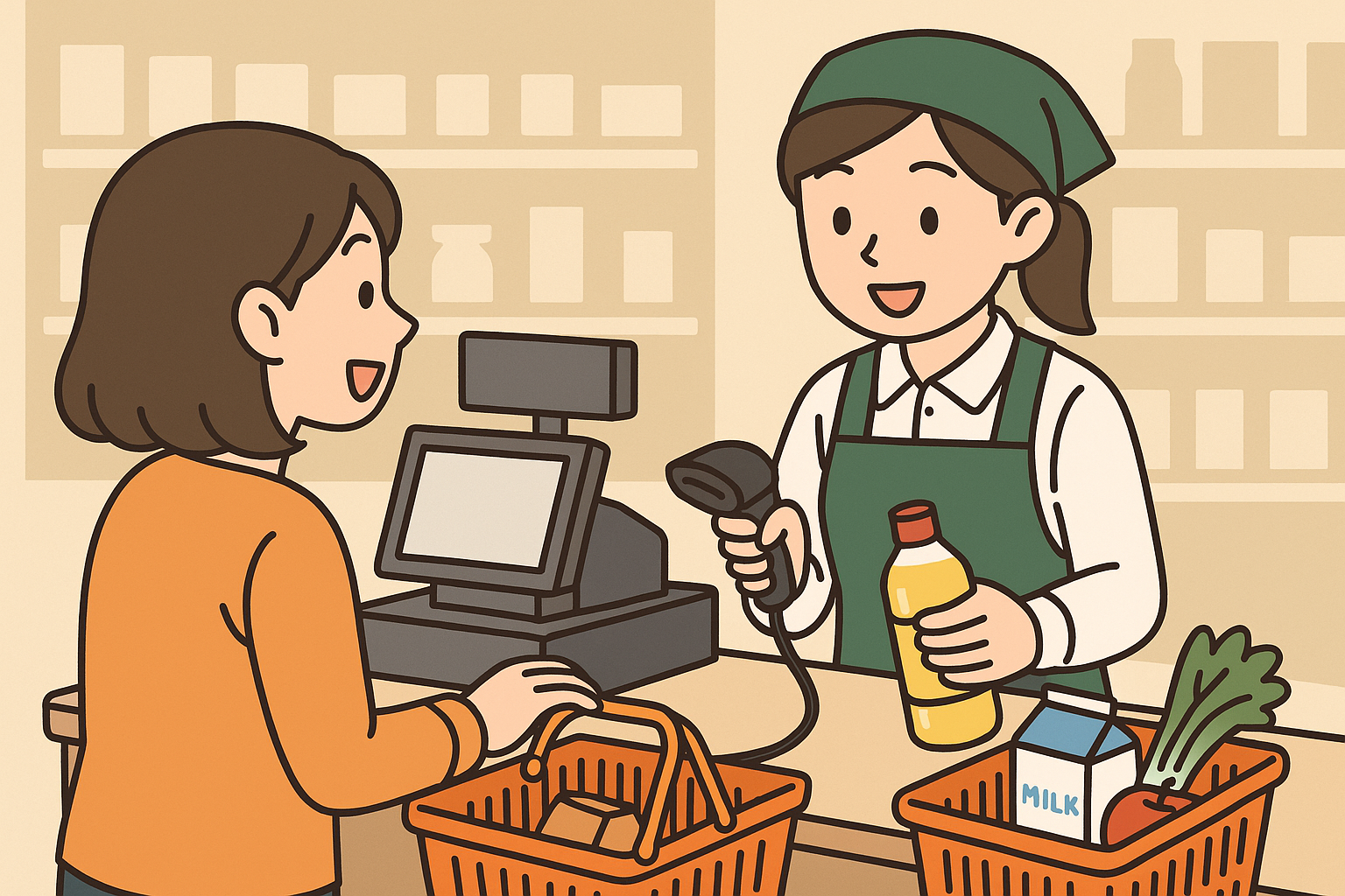 そこで「ピッ」とバーコードを読み取ってくれる人――それが**レジチェッカー(精算担当者)**です💁♀️