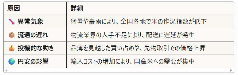 政府は事態を受けて備蓄米を放出する緊急対策を実施。各地のスーパーでは「古古古米」を求める人々の長蛇の列ができ、「令和の米騒動」とも呼ばれました 😰