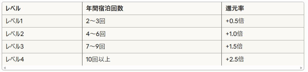 - 楽天トラベルでレベル4達成(年10回以上宿泊)
