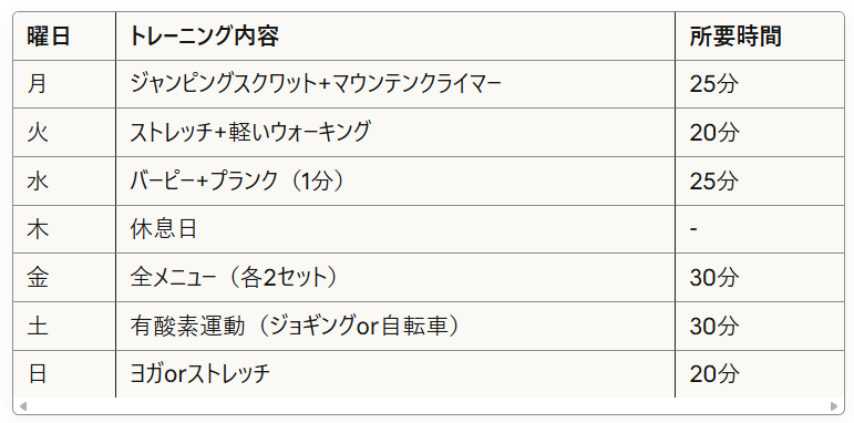 ✅ トレーニングは3つの柱: 筋トレ、有酸素、ストレッチ