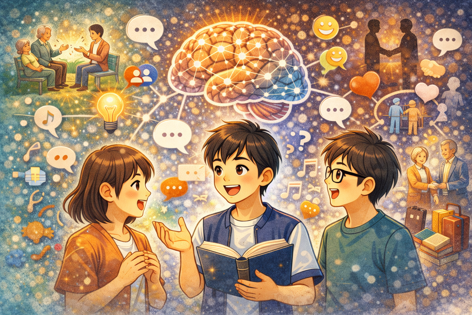 コミュニケーションは「社交」ではなく、脳への「最高の総合訓練」です。ワーキングメモリ・言語処理・感情認識・創造的思考・前頭前野の機能——会話はこれらを同時に鍛えます。